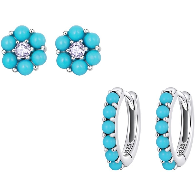 Bamoer 925 Prata Simples Brincos Com Anel Turquesa Para Mulheres Presentes De Moda Jóias