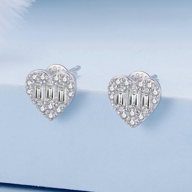 Bamoer 925 Prata Simples Brincos Em Forma De Coração Moda Joalheria Para Mulheres