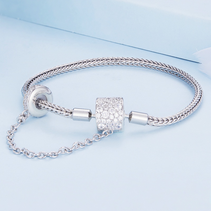 Bamoer 925 Prata Simples Pulseira Básica Com Corrente De Segurança Jóias Da Moda Para Mulheres