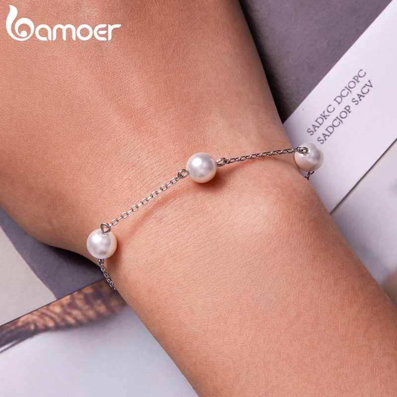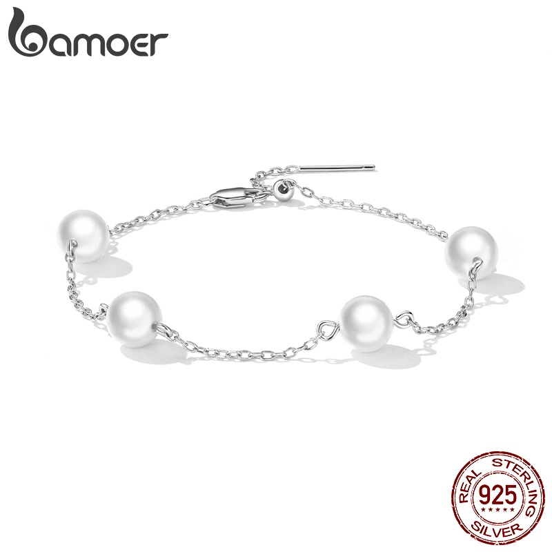 Bamoer 925 Prata Simples Shell Talão Pulseira 22 Cm Cadeia Ajustável Moda Jóias Presentes Para Mulheres