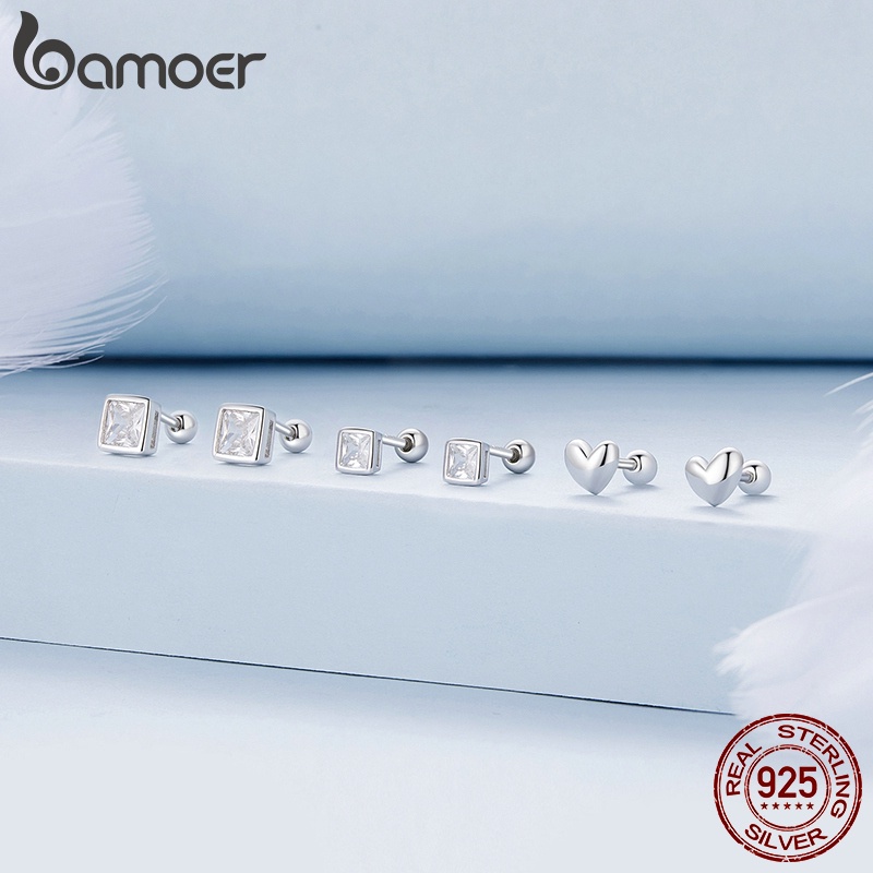 BAMOER 925 Prata Sterling Mini Square Zirconia Stud E Brincos De Cavilha Coração Jóias De Moda Para Presentes Femininos