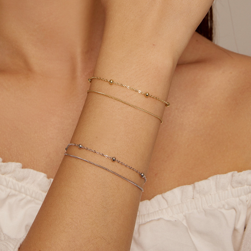 Bamoer 925 Pulseira Cadeia Mulheres Rodada Beads Double Layers Chain Link Pulseiras Feminino Jóias De Prata Esterlina 2019 Scb131