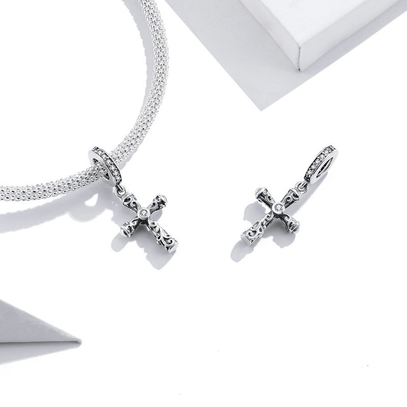 Bamoer 925 Silver Beads Devil Olhos E Cruz Série Pendurada Pingente Da Moda Para Acessórios BSC313