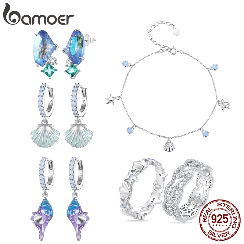 Bamoer 925 Silver Blue Sea Series Conjunto De Jóias De Tornozeleira/Anel/Brincos Para Presentes Femininos