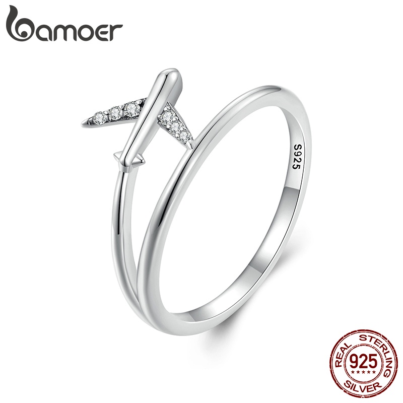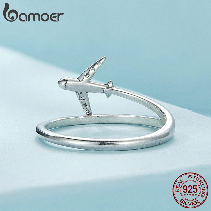 BAMOER 925 Silver Sterling Airplane Finger Ring Moda Jóias Presentes Para Mulheres