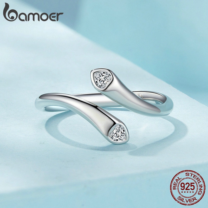 Bamoer 925 Silver Sterling Moonlight Trevo De Quatro Folhas E Amor Jóias De Moda Com Anel Aberto Ajustável Para Mulheres