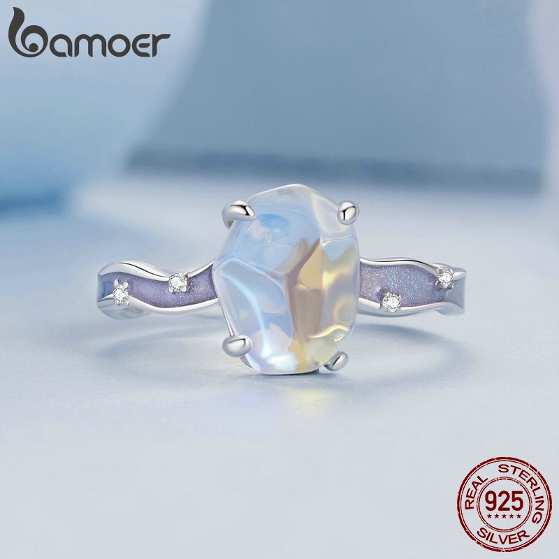 Bamoer 925 Sliver Ring Aurora Pedra Em Forma De Púrpura Zircônia Jewelry Presentes Para Mulheres