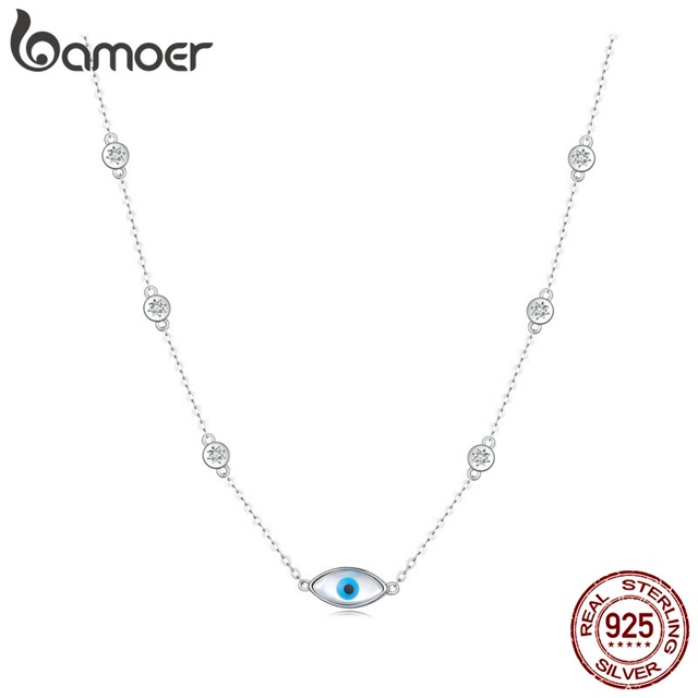BAMOER 925 Sterling Silver Blue Devil Eye Necklace Jóias Guardiãs Design De Moda Presente Para Mulheres