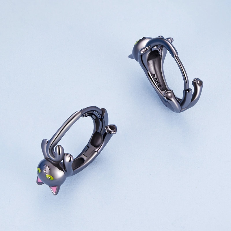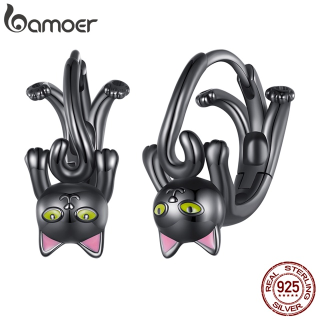 Bamoer 925 Sterling Silver Cute Cat Stud Brincos Da Moda Jóias Para Mulheres E Estudantes