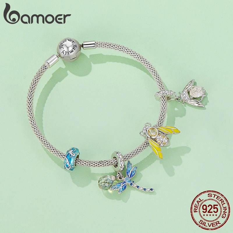 BAMOER 925 Sterling Silver Fantasy Insect Series Bead , Libélulas , Abelhas Encantos Da Moda De Bricolage Adequados Para Pulseiras