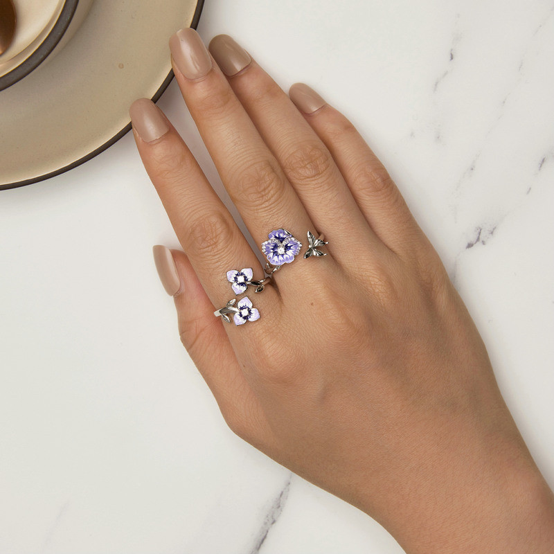Bamoer 925 Sterling Silver Flower Rings Lotus Quatro Folhas Clover Moda Feminina Acessórios De Aniversário BSR451