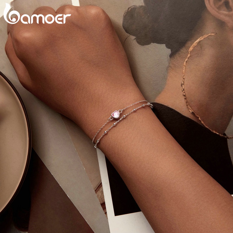 BAMOER 925 Sterling Silver Heart Charm Pulseira De Prata Dupla Camada Fashion Jewelry Gifts for Women