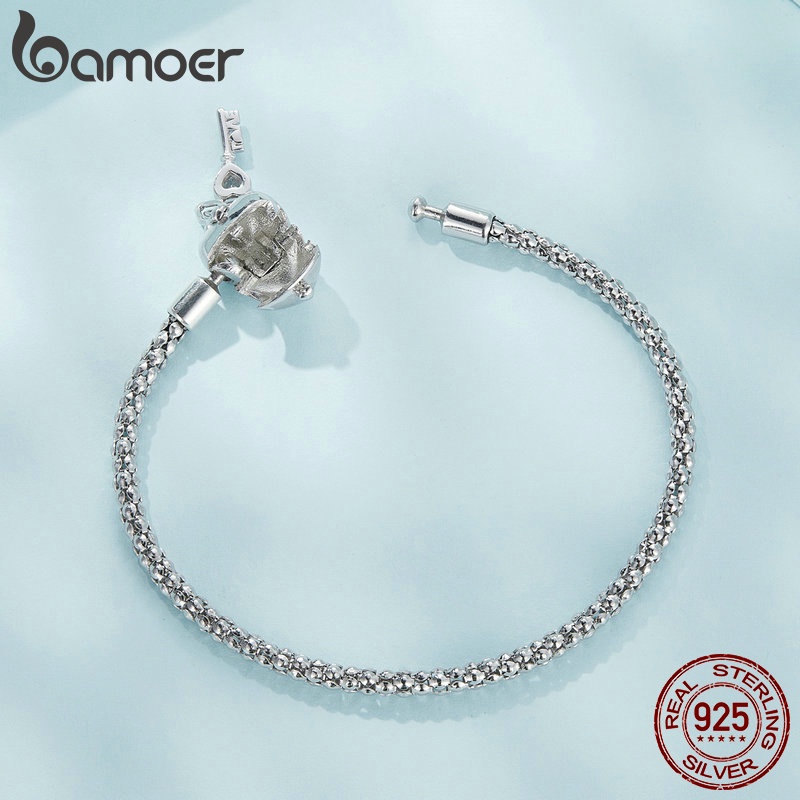 BAMOER 925 Sterling Silver Heart Lock Key Foundation Corrente De Jóias De Moda Para Mulheres