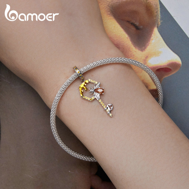 Bamoer 925 Sterling Silver Honeycomb E Bee Pendant Charms Chave De Encanto Para Mulheres Pulseira Original Jóias De Colar