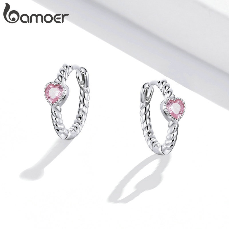 Bamoer 925 Sterling Silver Jewelry Set Brincos E Padrão De Amor Rosa Para Meninas Presentes