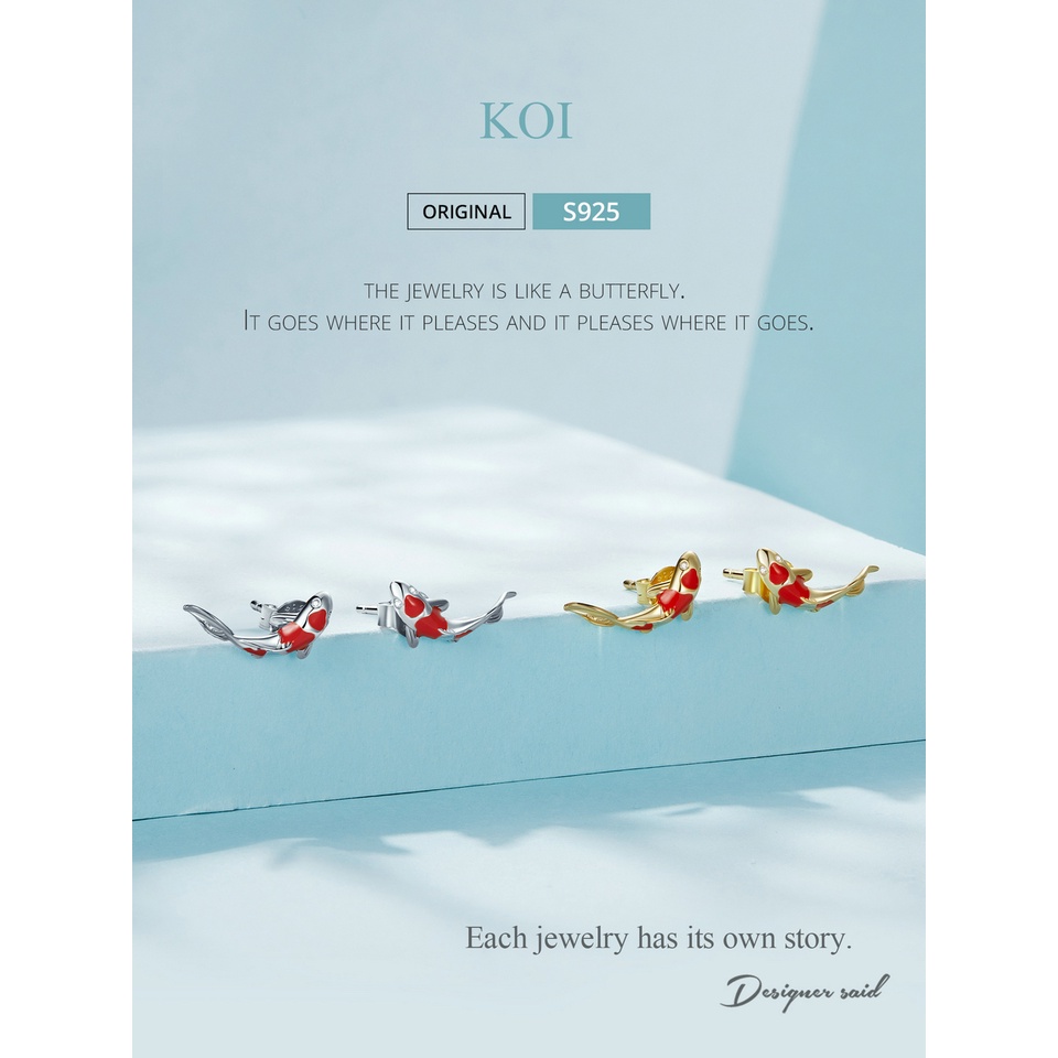 BAMOER 925 Sterling Silver Koi Fish Red Carp Stud Brincos Para Mulheres Com Zircônio Brilhante Jóias De Moda Presentes De Ano Novo