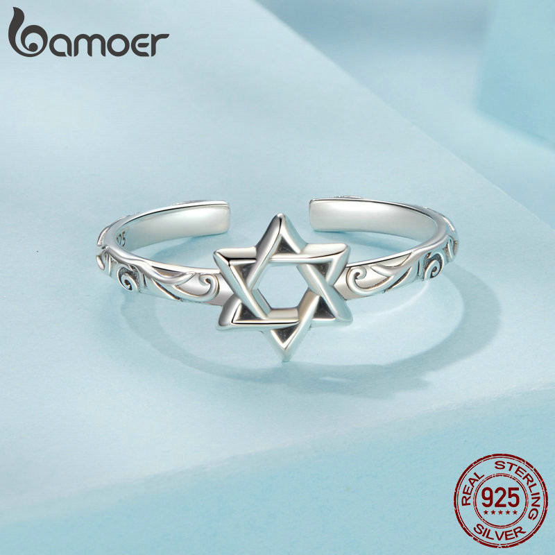 Bamoer 925 Sterling Silver Ring Seis Pontas Estrela Desenho De Jóias De Anel Aberto Para Mulheres .