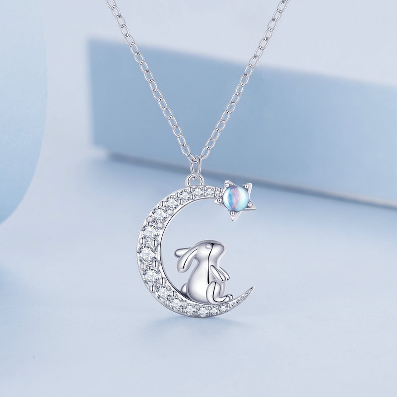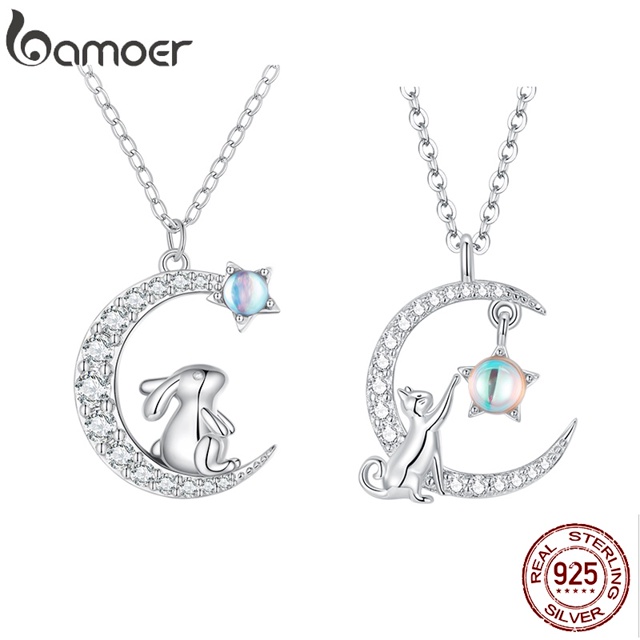 Bamoer 925 Sterling Silver Simple Moon Rabbit E Gato Colar Fashion Presentes De Aniversário Para Mulheres Estudantes