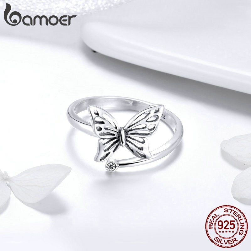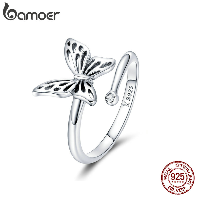 Bamoer 925 Sterling Silver Vintage Borboleta Anéis De Dedo Ajustável Para As Mulheres Noivado Jóias Scr448