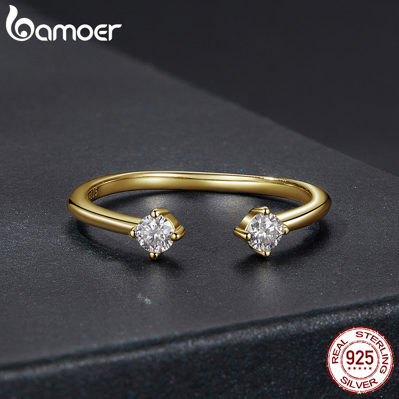 Bamoer 925 Sterling Sliver Anel Aberto Moissanite Cor Dourada Moda Joias Presentes Para Mulheres