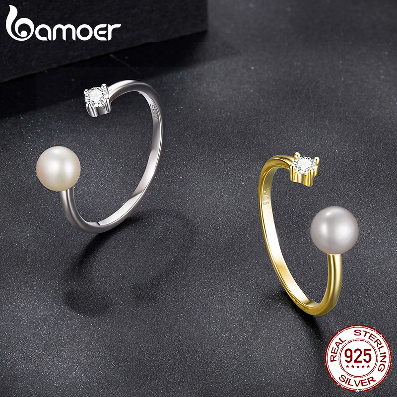 Bamoer 925 Sterling Sliver Anel Aberto Pérola Moissanite Moda Joias Presentes Para Mulheres