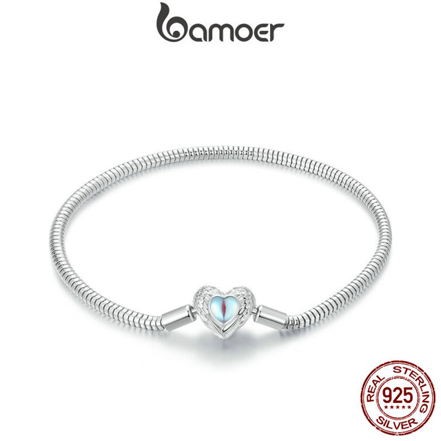 Bamoer 925 Sterling Sliver Bracelet Pulseira Fita Coração Guardião Jóias Básicas Presentes Para Mulheres