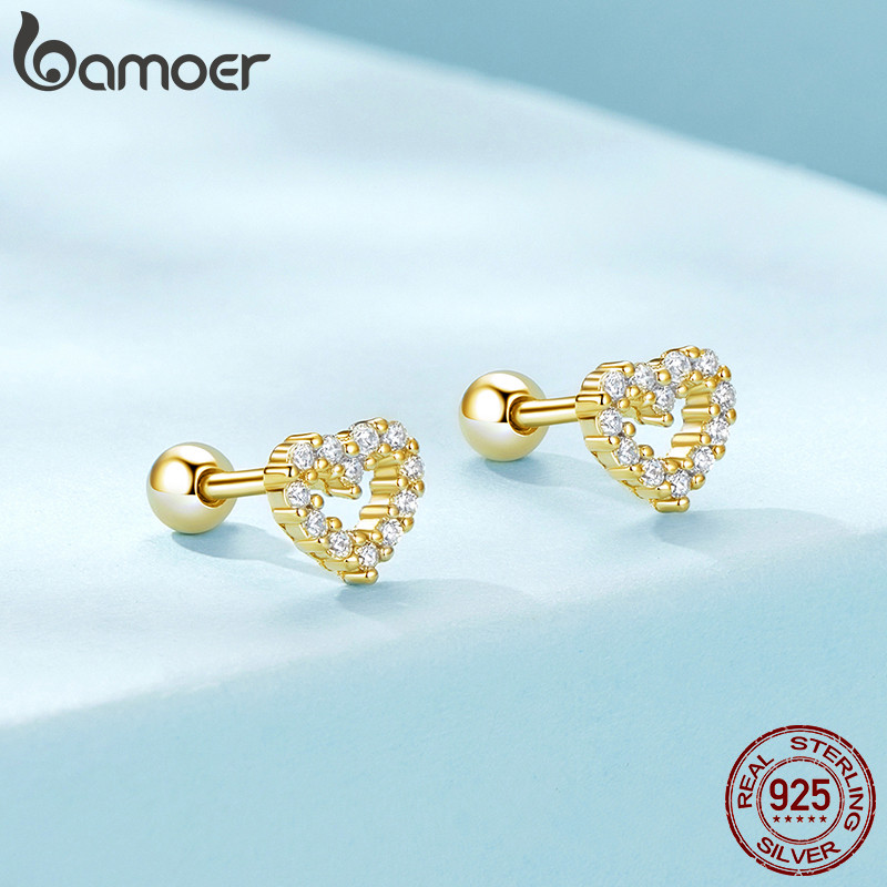 Bamoer 925 Sterling Sliver Brincos Coração Cor Dourada Requintada Moda Joias Presentes Para Mulheres