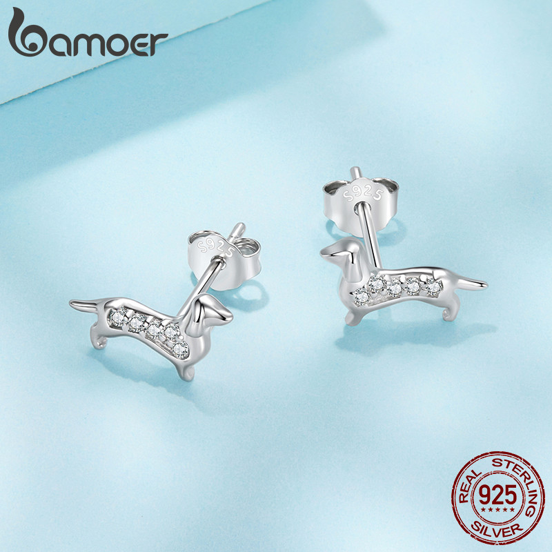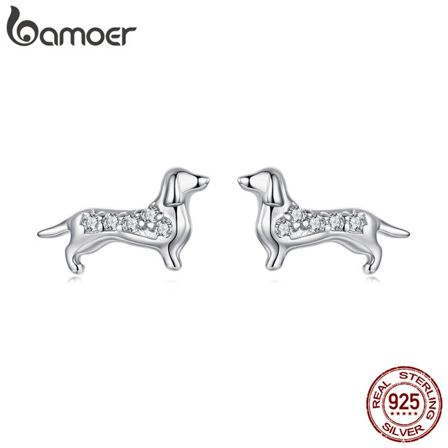 Bamoer 925 Sterling Sliver Brincos Dachshund Design Joias Presentes Para Mulheres