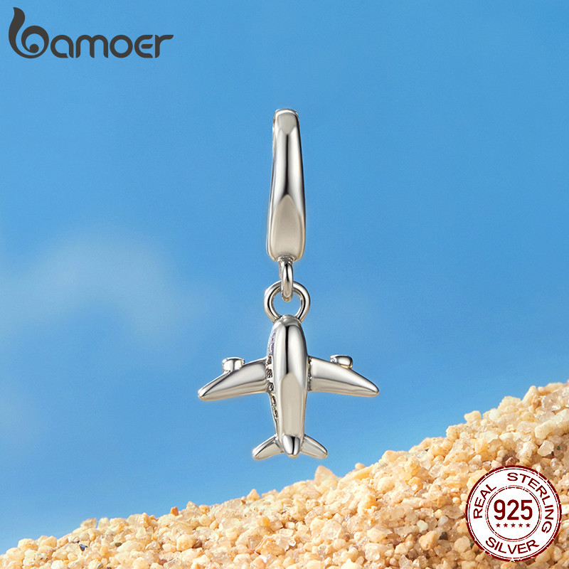 Bamoer 925 Sterling Sliver Charm Avião Pingente DIY Para Pulseira Presentes