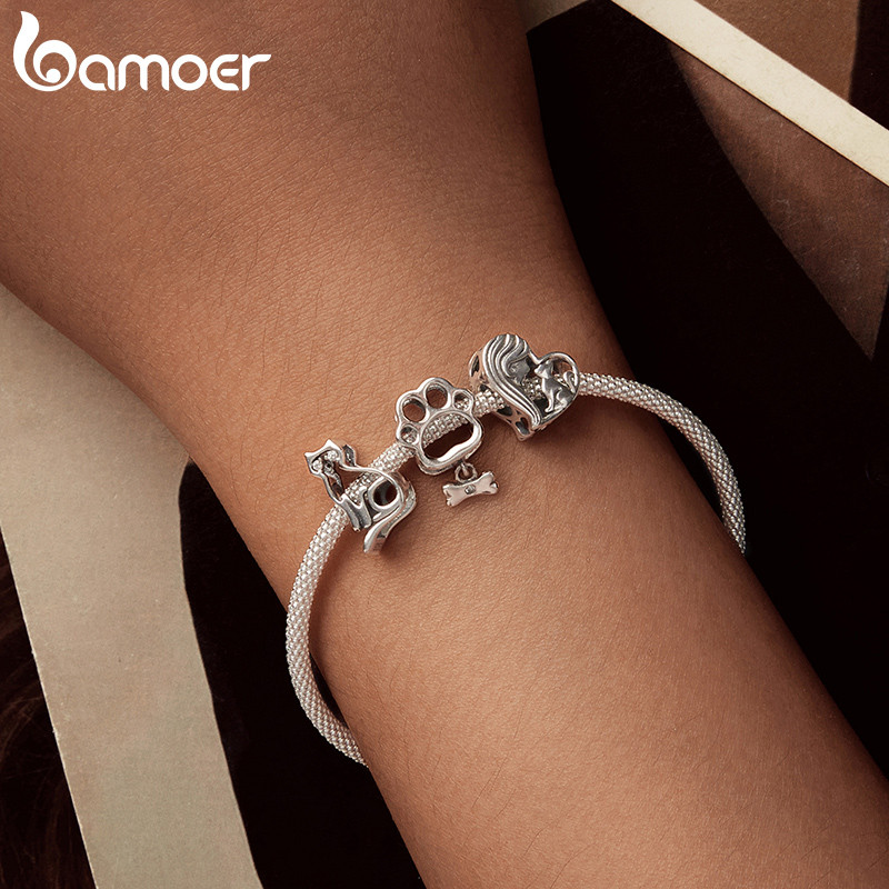 Bamoer 925 Sterling Sliver Charm Cute Cat Dog Pingente Série De Acessórios Para Pulseira