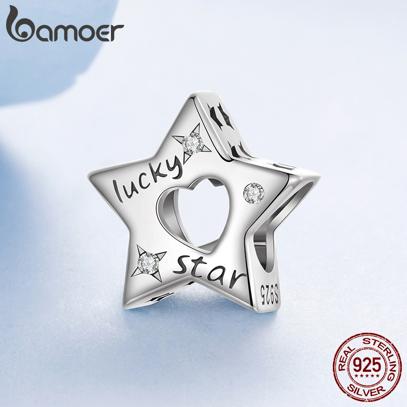 Bamoer 925 Sterling Sliver Charm Lucky Star Pingente DIY Para Pulseira Presentes