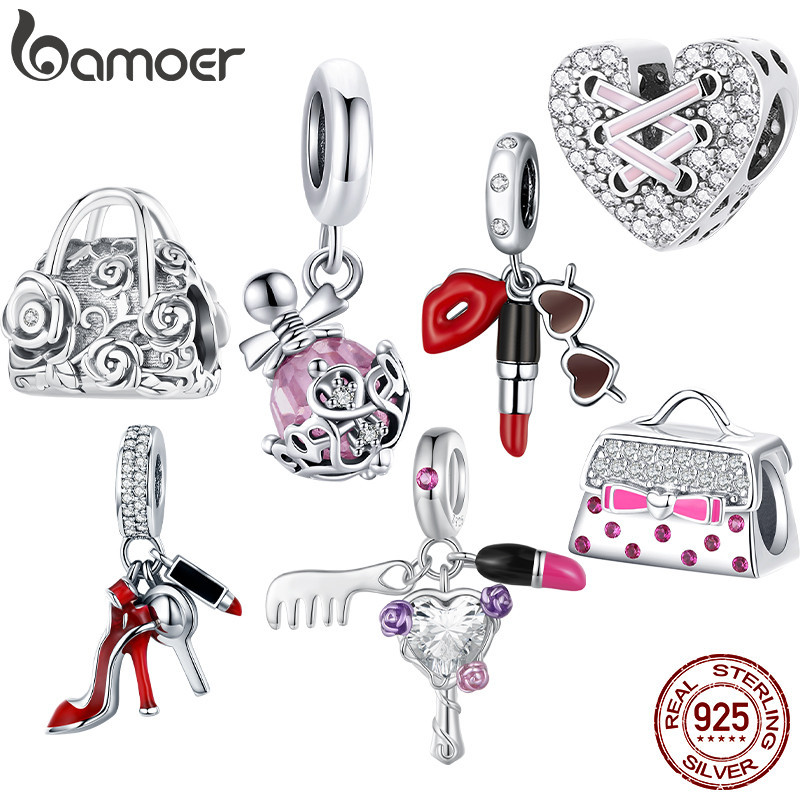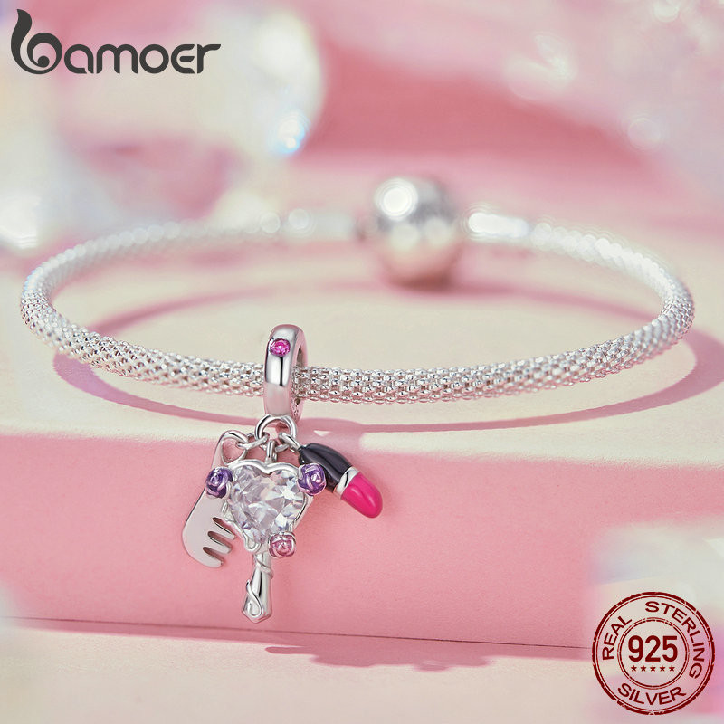 Bamoer 925 Sterling Sliver Charme Batom De Beleza Série Para Pulseira