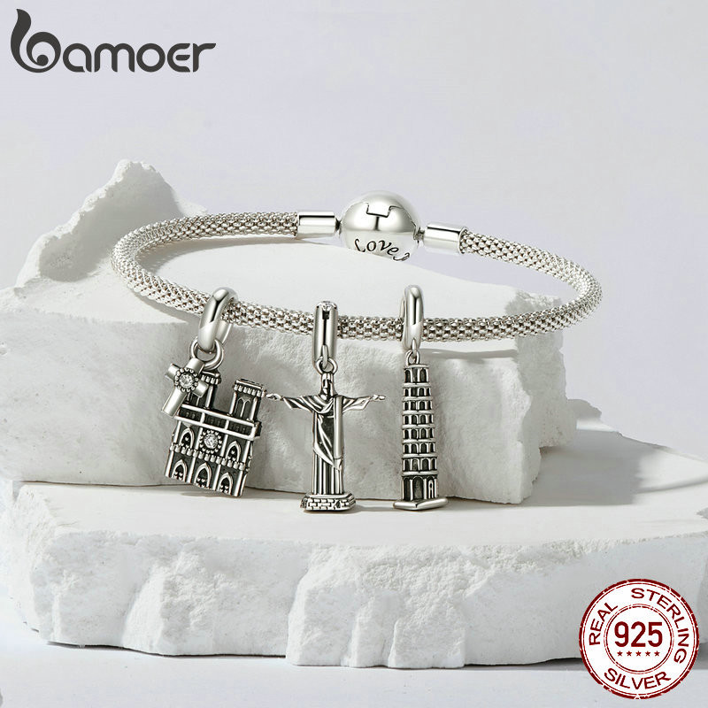 Bamoer 925 Sterling Sliver Charme Big Ben Torre De Acessórios Pisa Pendant Série Para Pulseira