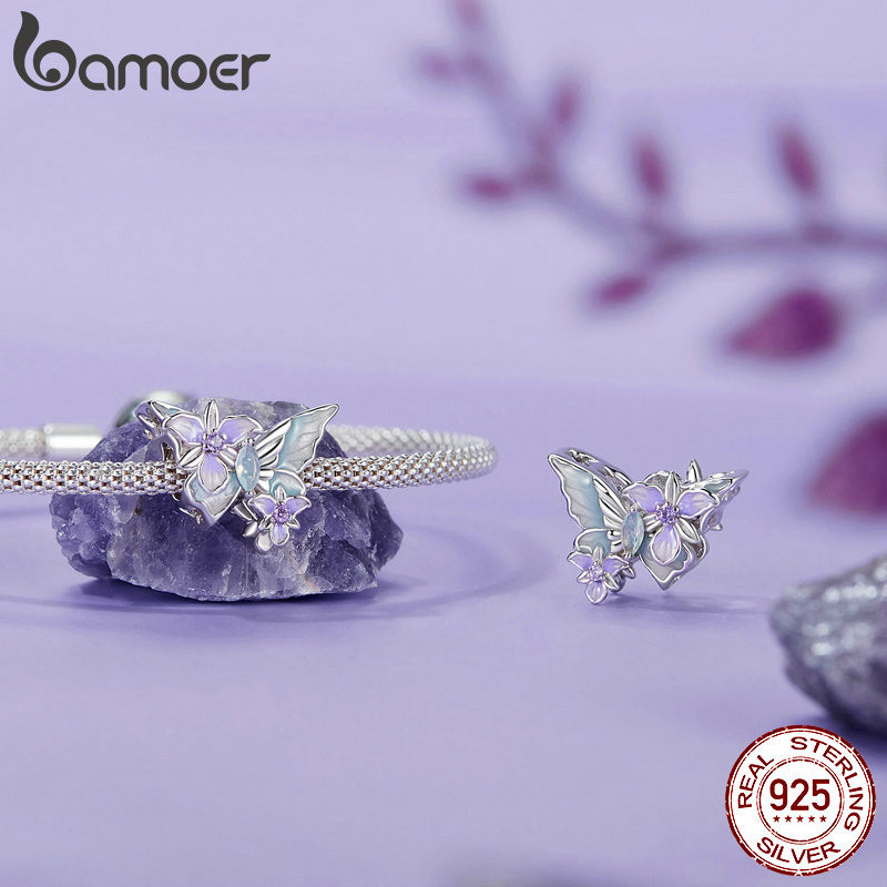 Bamoer 925 Sterling Sliver Charme Butterfly Iris Pendant Série De Acessórios Para Pulseira