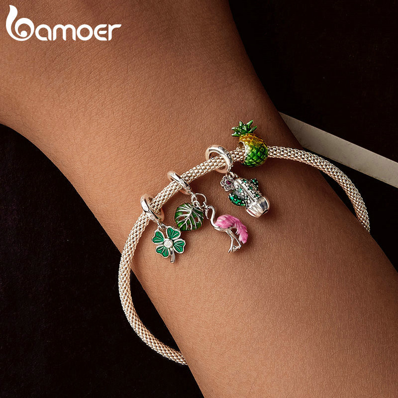 Bamoer 925 Sterling Sliver Charme Cactus Acessórios De Flor De Cacto Para Pulseira