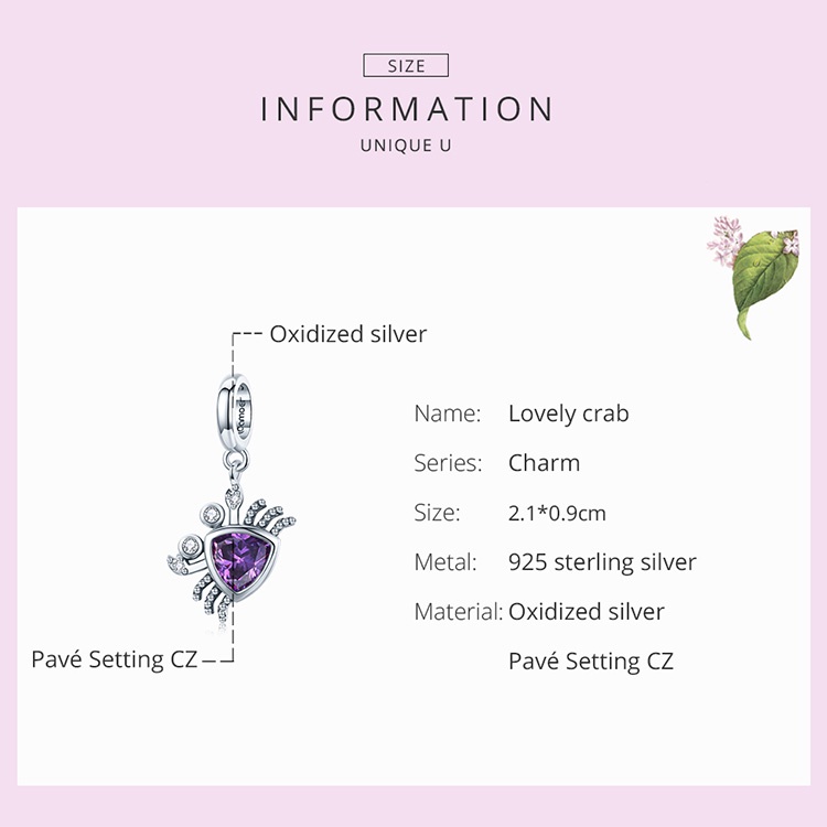 Bamoer 925 Sterling Sliver Charme De Caranguejo Deslumbrante Pingente De Design De Vidro Colorido BSC848