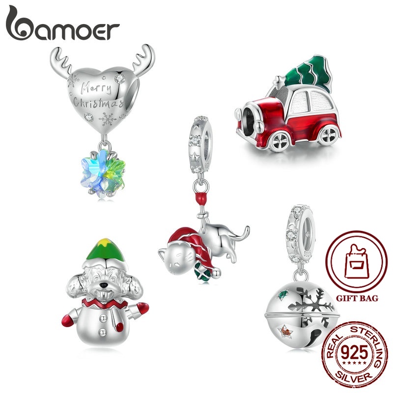 Bamoer 925 Sterling Sliver Charms Pendants Feliz Natal Elk Kitten Bell Snowman Coleção Acessórios Para Pulseiras DIY