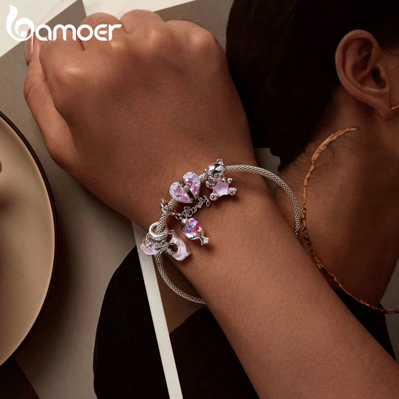 Bamoer 925 Sterling Sliver Charms Pink Sweet Heart Candy Pendant Coleção De Acessórios Para Pulseiras DIY
