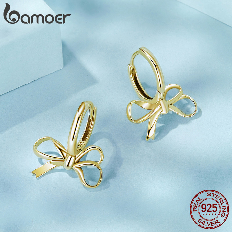 Bamoer 925 Sterling Sliver Hoop Brincos Arco Cor Dourada Design Joias Presentes Para Mulheres