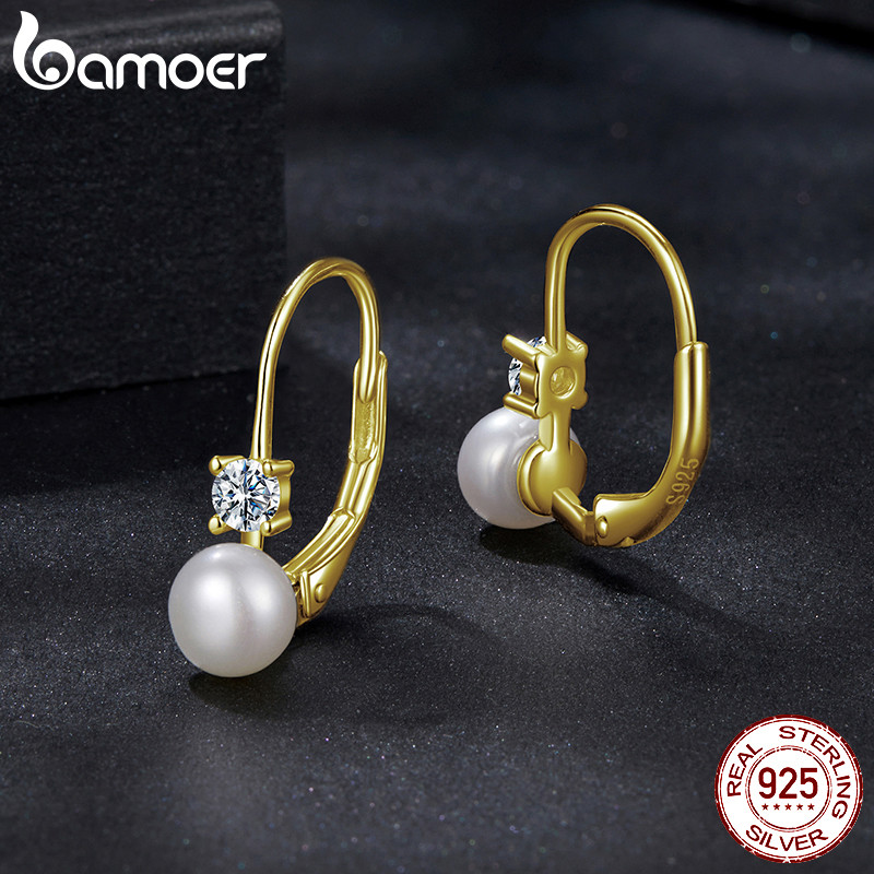 Bamoer 925 Sterling Sliver Hoop Brincos Moissanite Pérola Cor Dourada Joias Presentes Para Mulheres