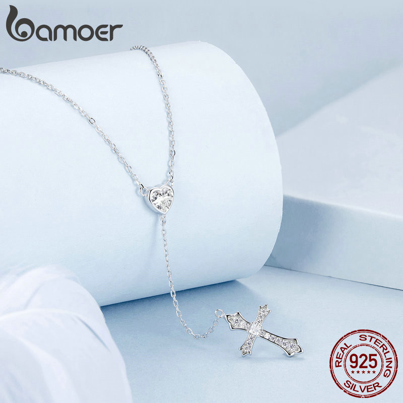 Bamoer 925 Sterling Sliver Necklace De Fita Cruzada Jóias Em Forma De Corrente Presentes Para Mulheres
