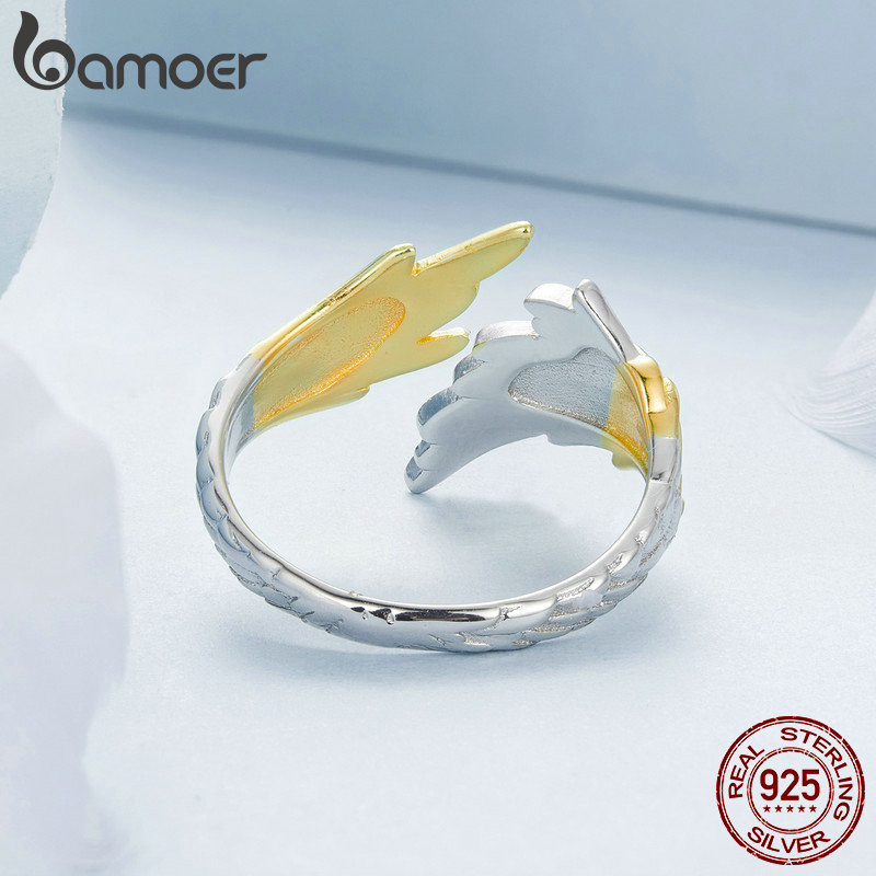 Bamoer 925 Sterling Sliver Ring Ajustável De Duas Asas De Asa