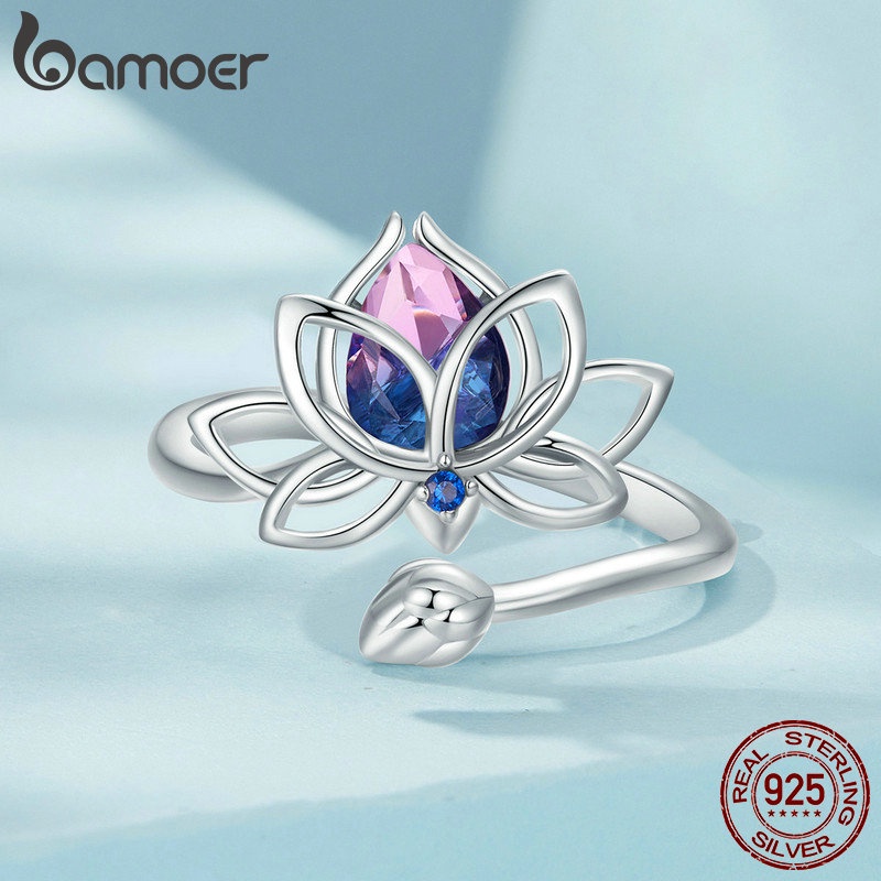 Bamoer 925 Sterling Sliver Ring Butterfly Lotus Flower Anel De Abertura Jóias De Moda Presentes Para Mulheres SCR984