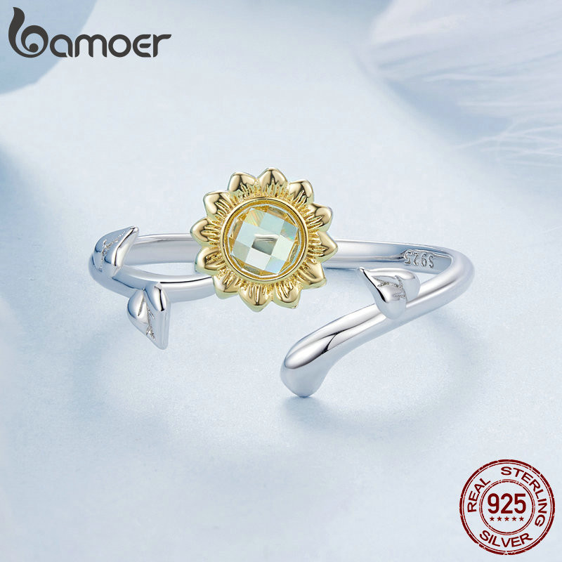 Bamoer 925 Sterling Sliver Ring Girassóis Anel Aberto Jóias De Moda Requintada Presentes Para Mulheres