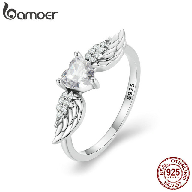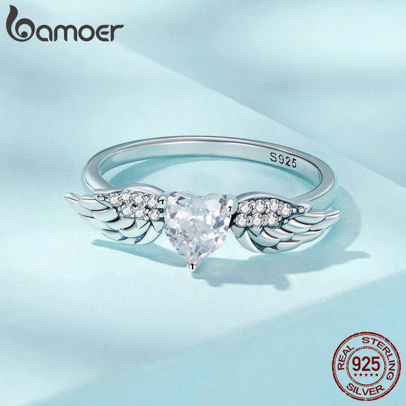 Bamoer 925 Sterling Sliver Ring Jóias De Asa De Amor Presentes Para Mulheres