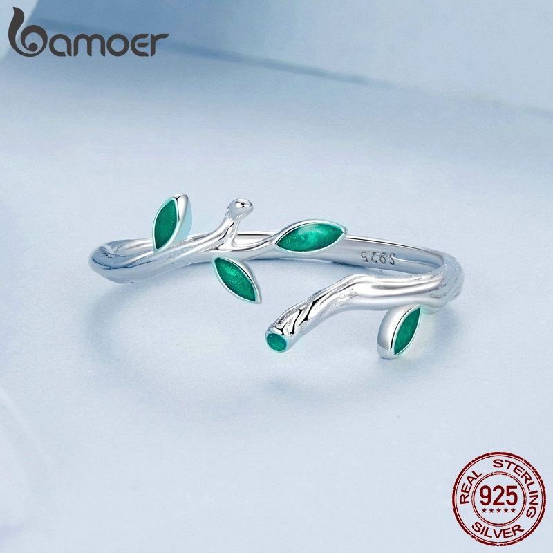 Bamoer 925 Sterling Sliver Ring Leaf Design Abertura Do Anel Jóias De Moda Presentes Para Mulheres