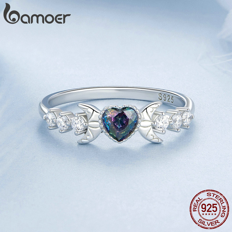 Bamoer 925 Sterling Sliver Ring Moon Design De Jóias De Moda Requintada Presentes Para Mulheres