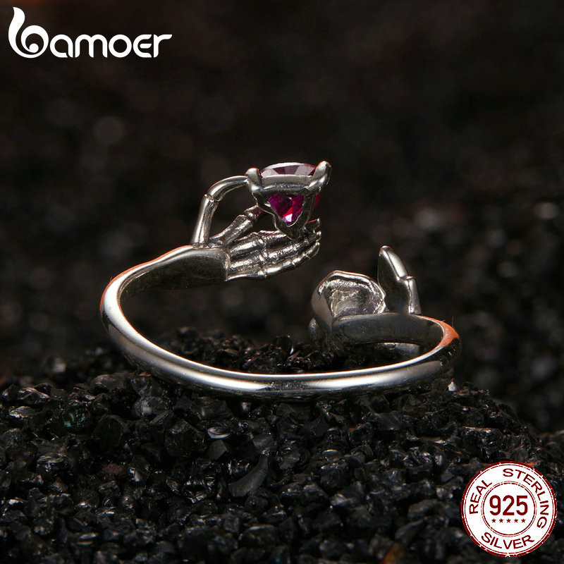 Bamoer 925 Sterling Sliver Ring Rose Skeleton Rosa Esqueleto Mão Jóias De Moda Para Mulheres