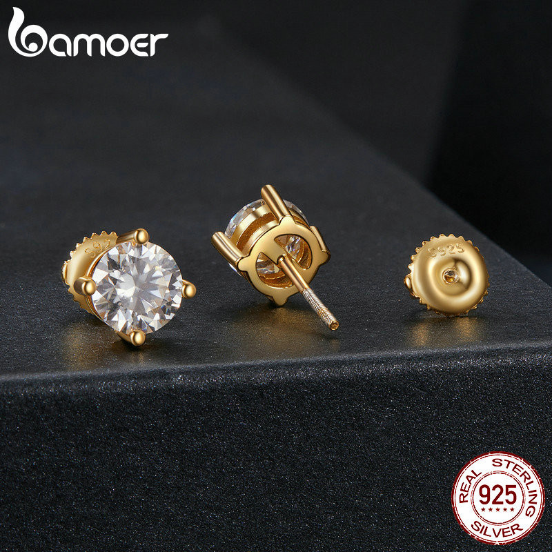 Bamoer 925 Sterling Sliver Stud Brincos Moissanite 4-Prongs Jóias Presentes Para Mulheres