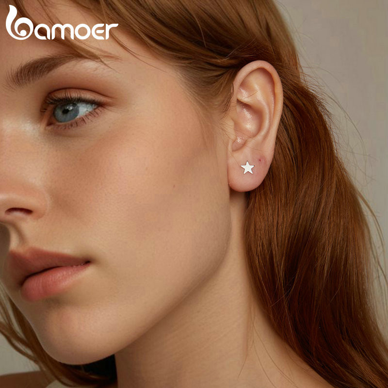 Bamoer 925 Sterling Sliver Studs Brincos Estrelas Redondas Jóias Presentes Para Mulheres